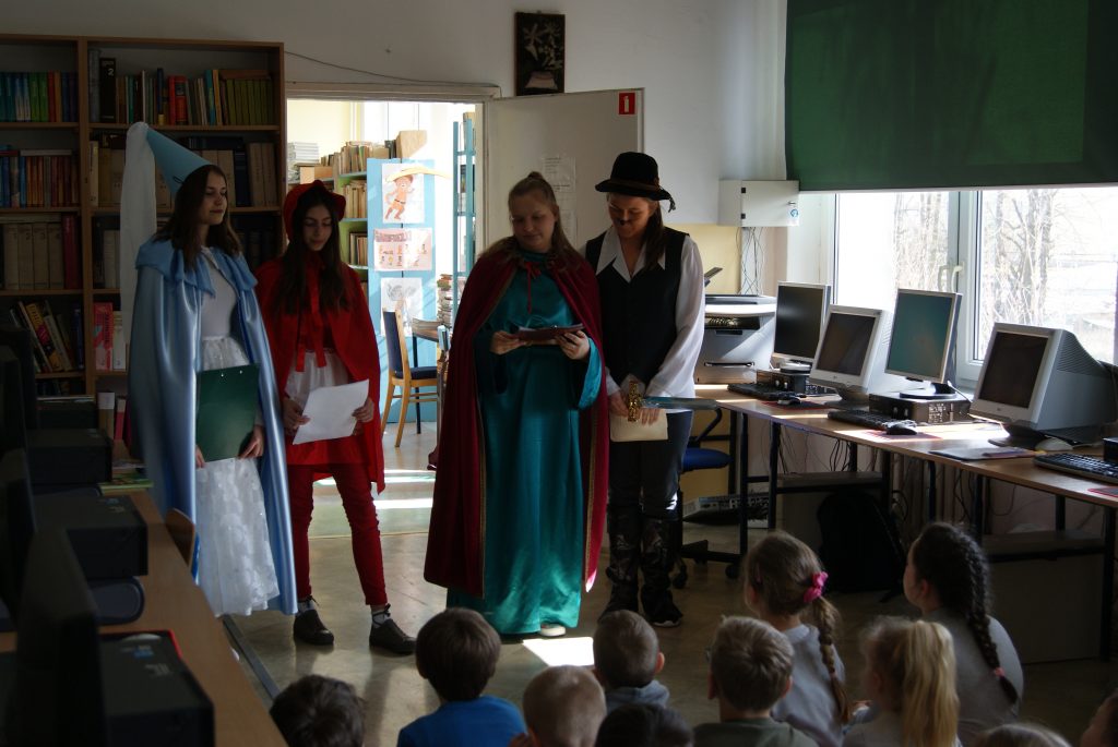 Zanim jednak najmłodsi uczniowie złożyli przyrzeczenie, przenieśli się do zaczarowanego świata bajek dzięki inscenizacji przygotowanej przez uczniów klas gimnazjalnych. Rozwiązywali również zagadki, które sprawdzały znajomość bohaterów baśni i bajek.