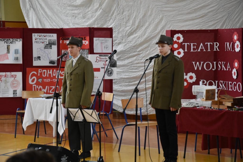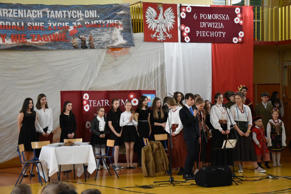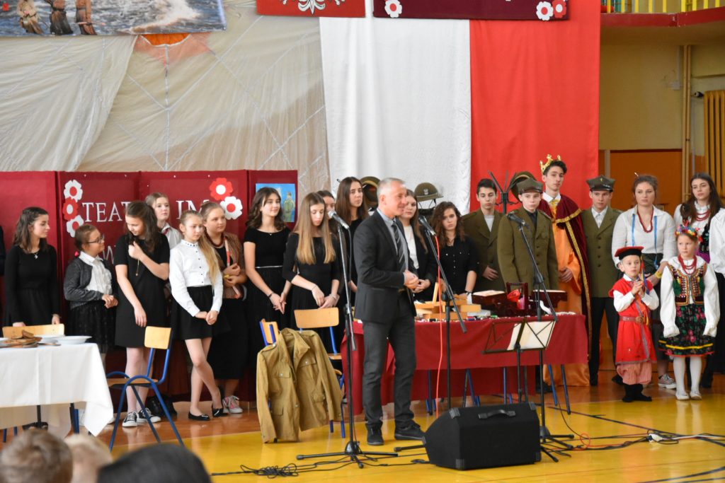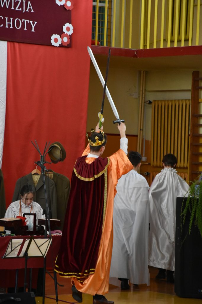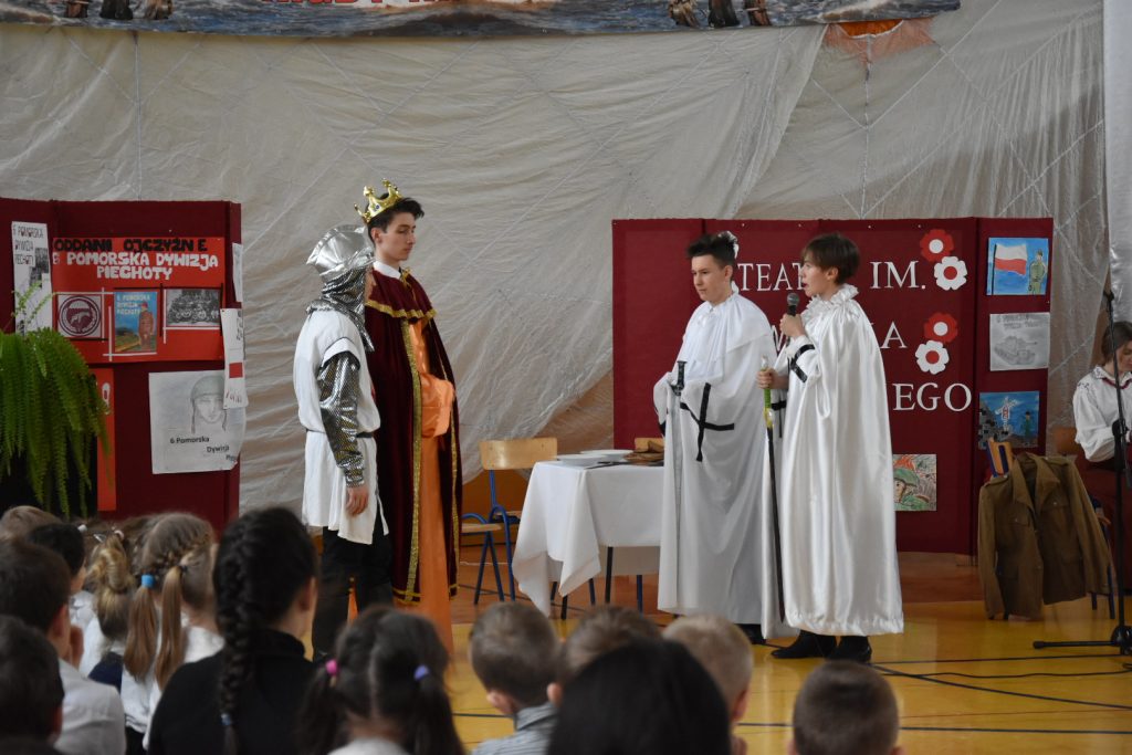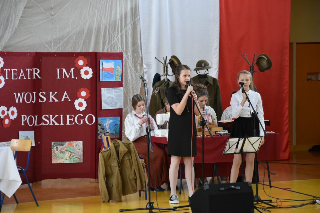 Spektakl poetycko-muzyczny został przygotowany przez uczniów klasy 3a, 3b, 3c oraz 5a pod kierunkiem pani K. Markuc, p. M. Małek i p. A. Kuligi. Obrazki z historii Polski miały na celu podkreślić ogromną rolę żołnierzy w dziejach naszego kraju. To oni właśnie, czy w wieku XV, czy też w XX, niezależnie od tego , czy nosili mundury, czy tworzyli regularne oddziały wojskowe, czy też byli skrywającymi swoje twarze konspiratorami, walczyli o wolność Polski i strzegli bezpieczeństwa jej granic.