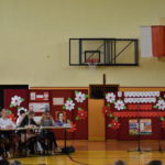 Akademię rozpoczęliśmy od odśpiewania czterech zwrotek hymnu. Kolejny już rok wzięliśmy udział w akcji MEN „Szkoła do hymnu”, której celem jest włączenie się w obchody Narodowego Święta Niepodległości.