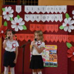 Na końcu dziewczynki z klasy 1c – Claudia Turzańska i Zuzia Turzyniecka wzruszyły zebranych swoim śpiewem i skłoniły wszystkich do refleksji nad pytaniem „Co to jest niepodległość?” .