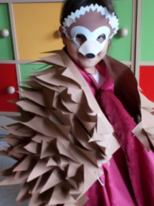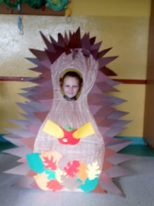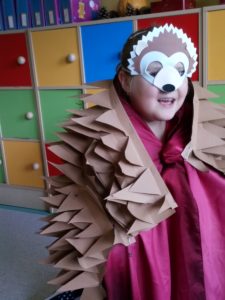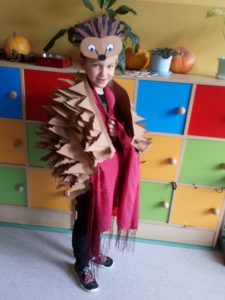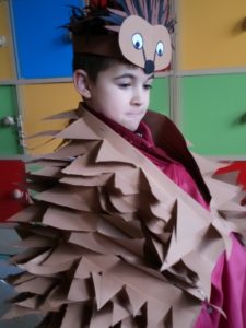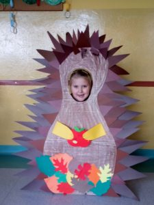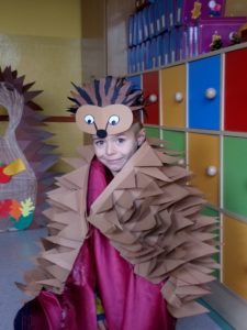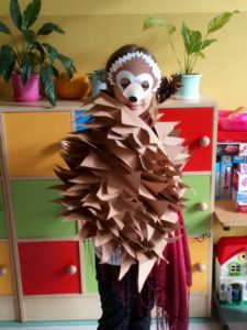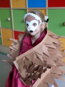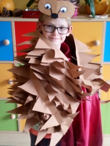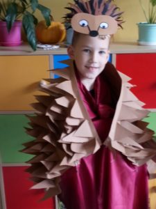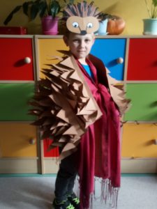 Na zakończenie zajęć uczniowie musieli wykazać się znajomością jeżowych nawyków poprzez uczestnictwo w Quizie oraz kolorując jeżową mozaikę. Poszło im doskonale, a w nagrodę każdy świetliczak poczuł się jak jeż, zakładając strój kolczastego przyjaciela i pozując w fotobudce przygotowanej przez wychowawczynie grupy: p. Magdę i p. Kasię. Zabawy i śmiechu nie było końca.