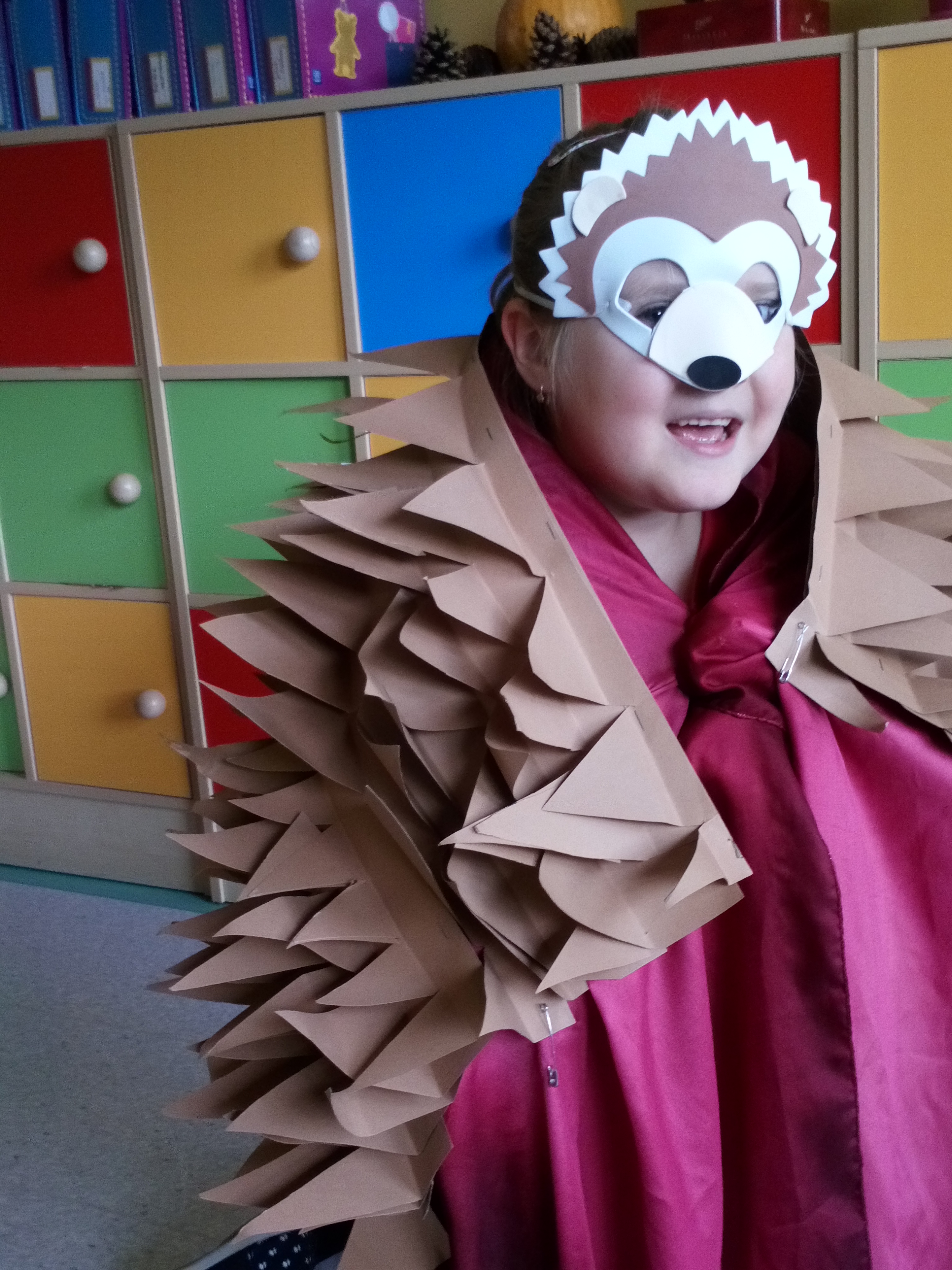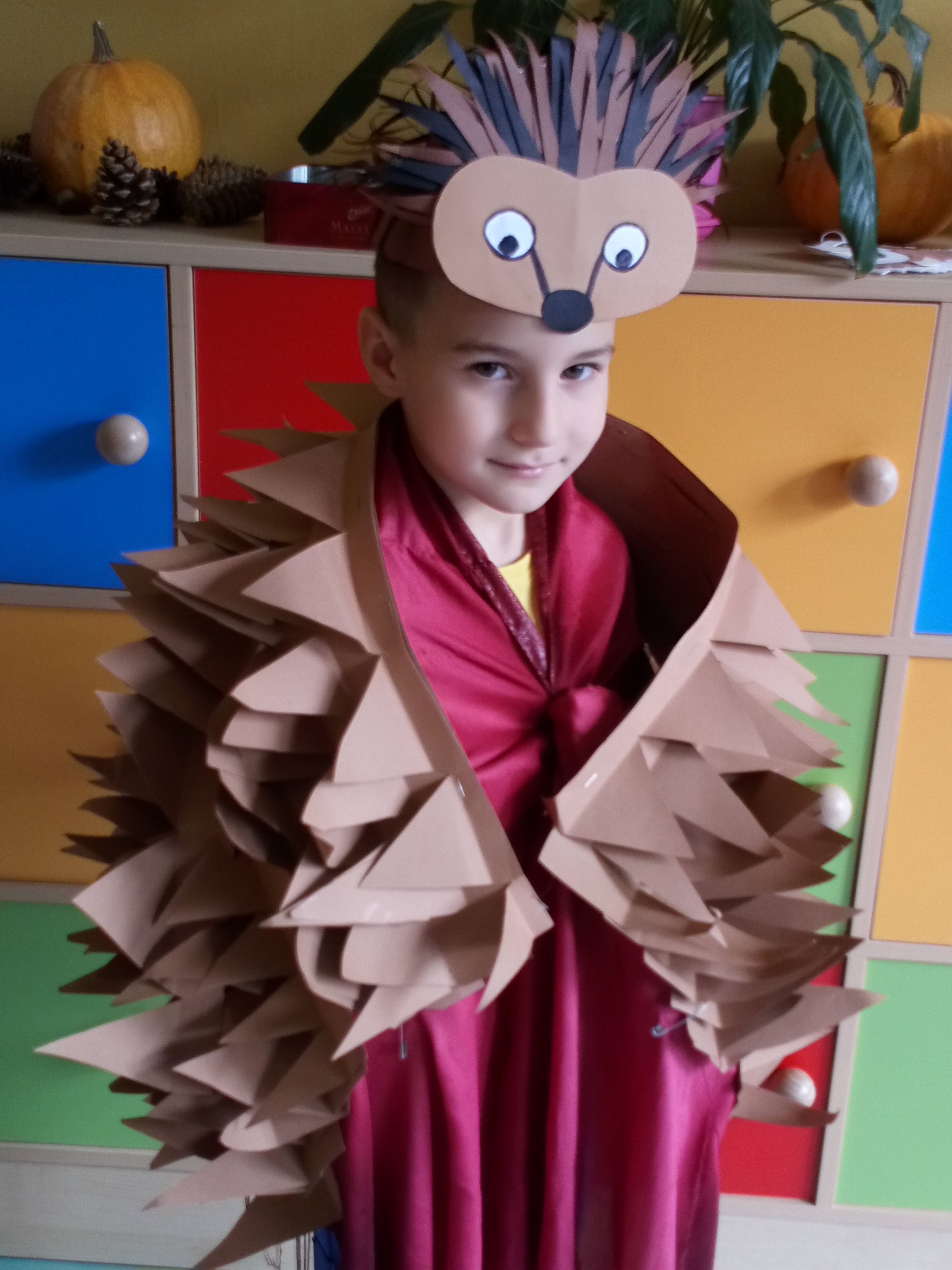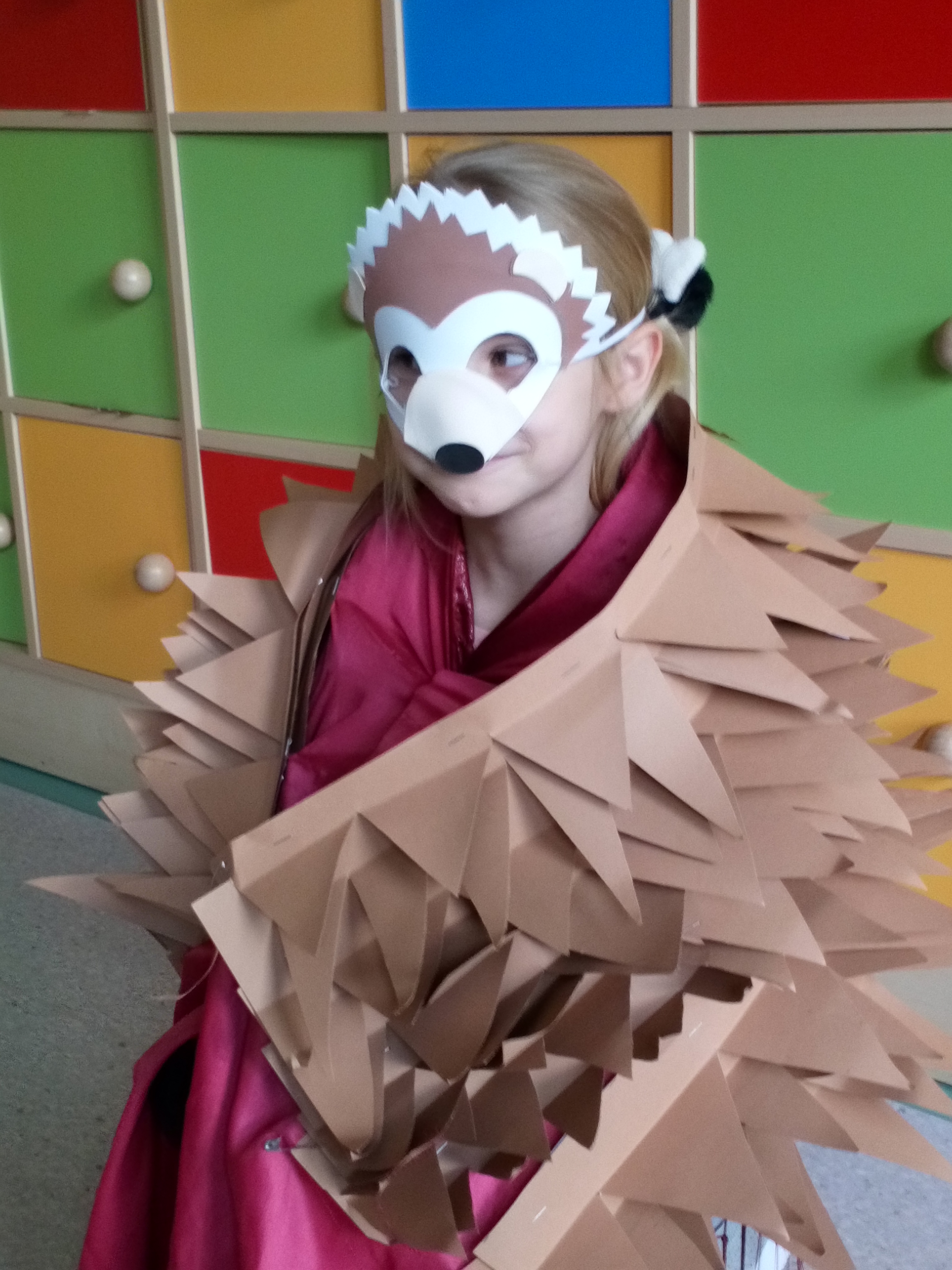 Na zakończenie zajęć uczniowie musieli wykazać się znajomością jeżowych nawyków poprzez uczestnictwo w Quizie oraz kolorując jeżową mozaikę. Poszło im doskonale, a w nagrodę każdy świetliczak poczuł się jak jeż, zakładając strój kolczastego przyjaciela i pozując w fotobudce przygotowanej przez wychowawczynie grupy: p. Magdę i p. Kasię. Zabawy i śmiechu nie było końca.