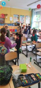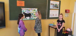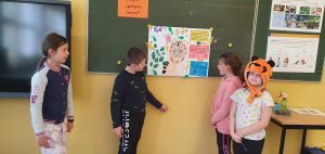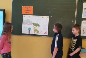 Uczniowie z klasy 2c przez dwa tygodnie pracowali metodą projektu. Dotyczył on zwierząt egzotycznych. Uczniowie sami wybrali tematy pracy. Samodzielnie zbierali informacje dotyczące wyglądu, występowania, pożywienia: żyrafy, leniwca, czarnej pantery, tygrysa i lamparta. Dzieci przygotowały plakaty, a następnie na lekcji zaprezentowały efekty swojej pracy. Drugoklasiści wykazali się dużą odpowiedzialnością, umiejętnością współpracy i organizowania działań, dzielenia się obowiązkami, samodzielnością oraz ogromnym zaangażowaniem.