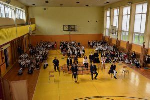 Akademia rozpoczęła się okolicznościowym przemówieniem pana dyrektora Damiana Wojtowicza, przewodniczącej szkoły – Konstancji Iwańczyk oraz księdza proboszcza – ks. Jacka Michno. Szczególnie ciepło przywitani zostali uczniowie klas pierwszych. Następnie odbyła się część artystyczna przygotowana przez p. Iwonę Łakus wraz z uczniami z klasy Va oraz p. Adama Kuligę.