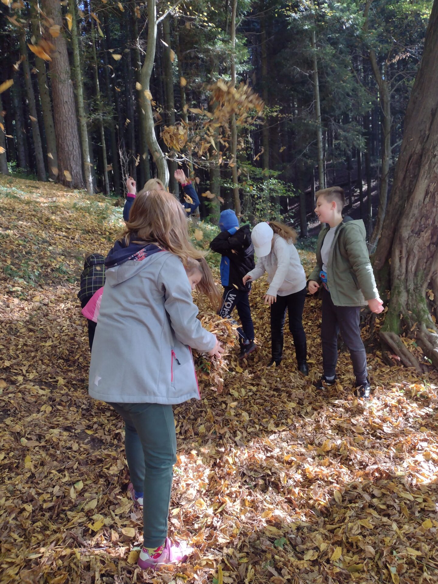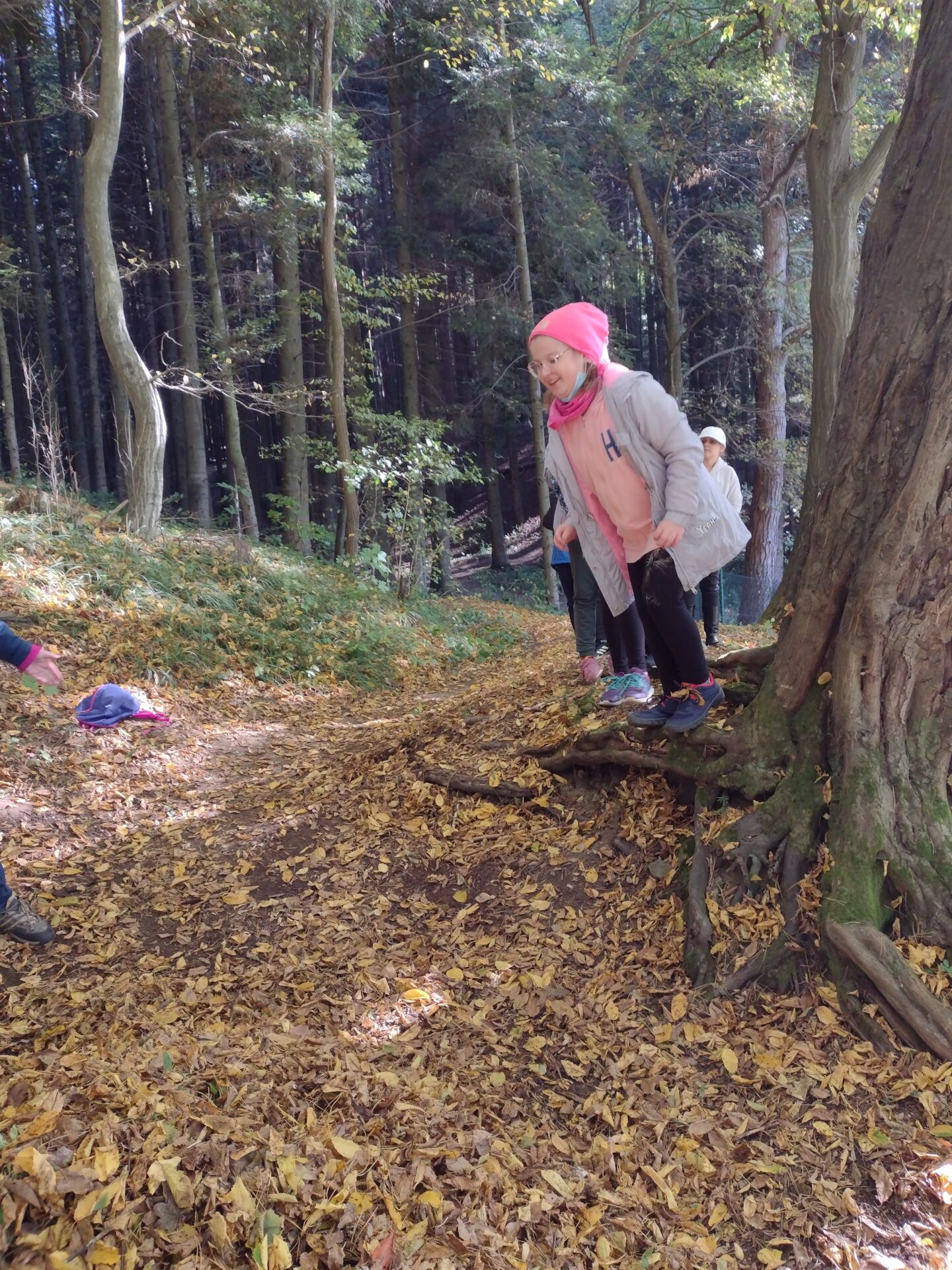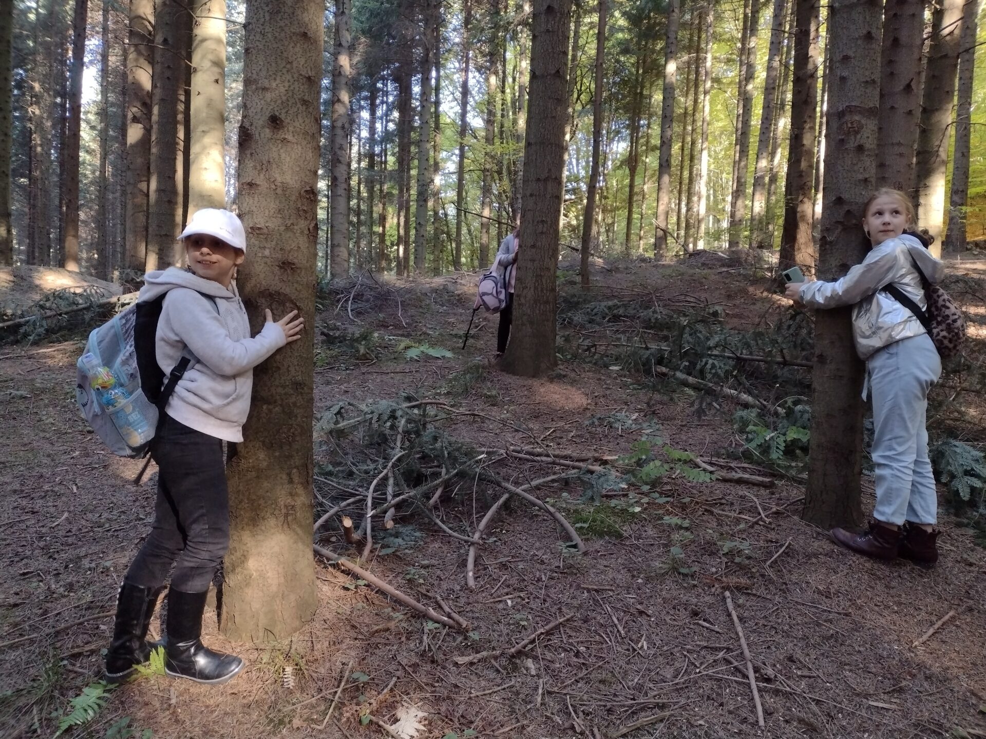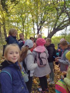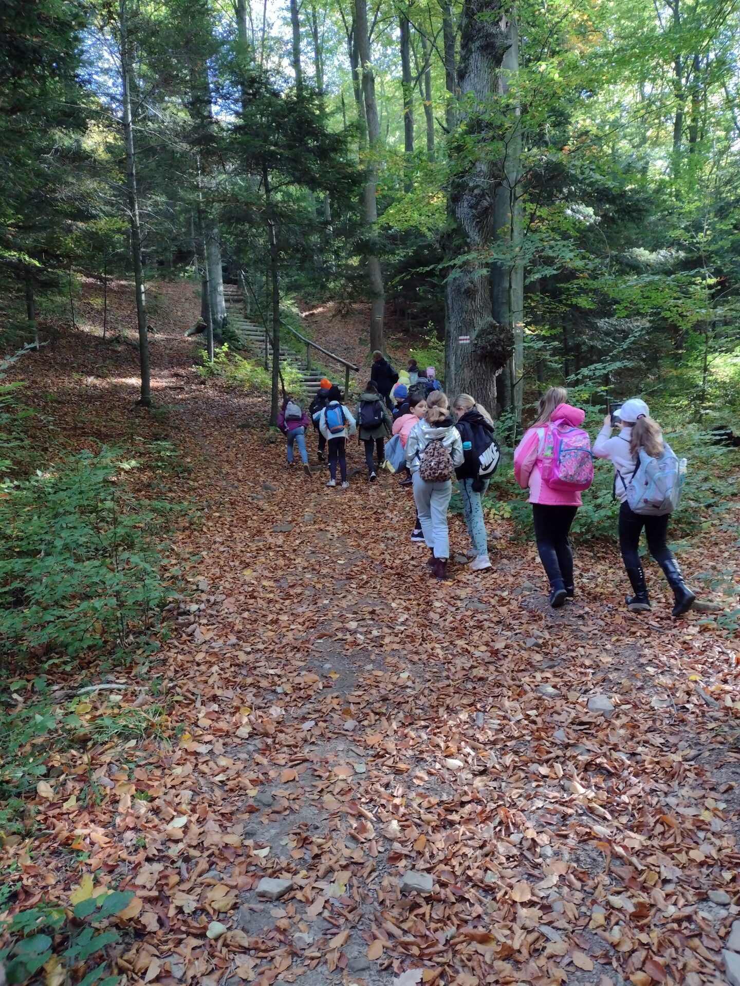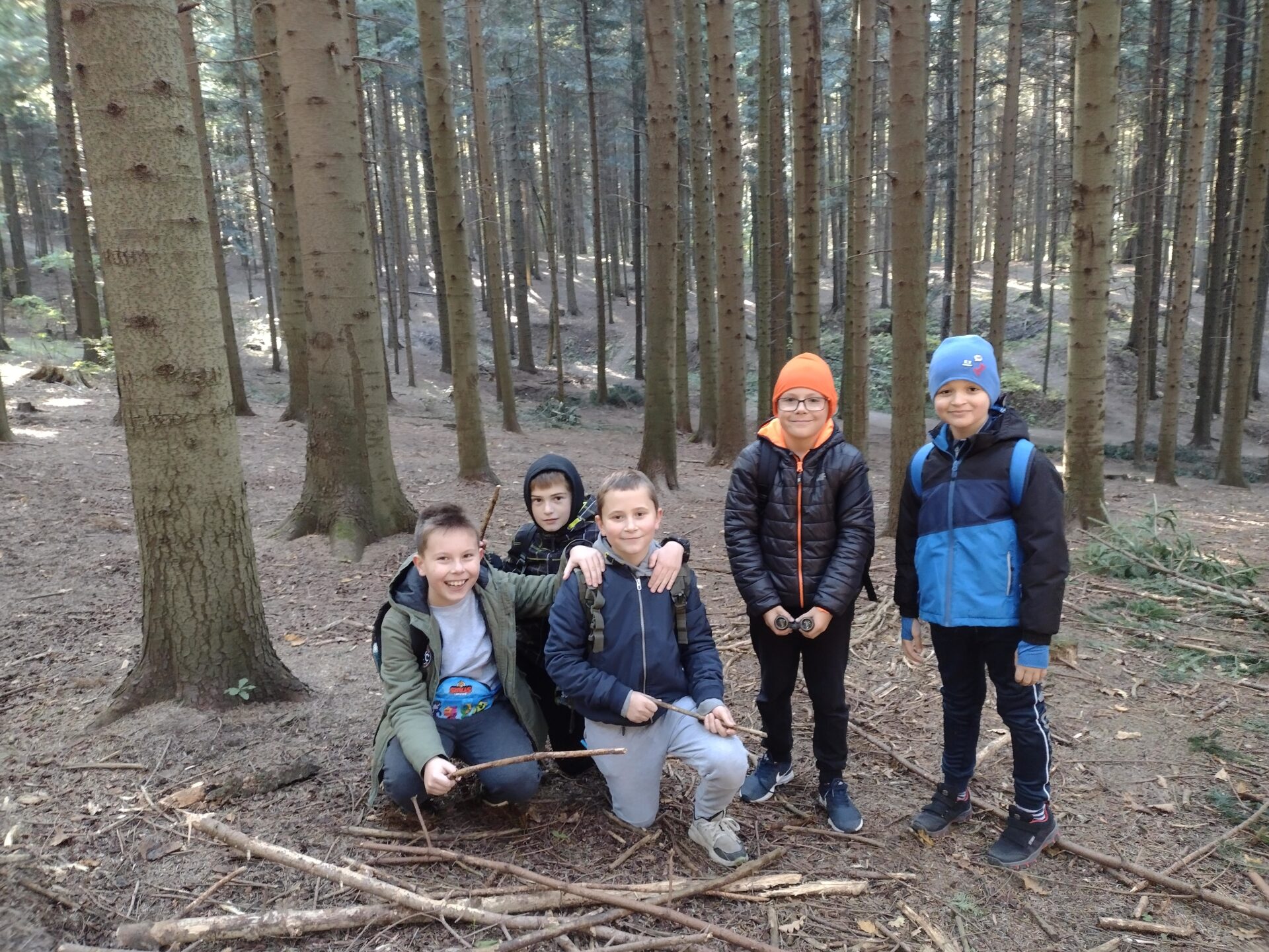 Klasa 3b w dniu 8 października udała się na wycieczkę rekreacyjno-edukacyjną do lasu w Sanoku, będącego częścią Parku Krajobrazowego Gór Słonnych. Celem wycieczki było przypomnienie dzieciom, z jakich warstw jest zbudowany las, rodzaje lasów występujących w środowisku, a także jakie zwierzęta i rośliny możemy spotkać w tym miejscu. Podczas spaceru po lesie uczniowie starali się rozpoznać typowe dla tego miejsca rośliny oraz nazwać różne gatunki drzew, a także ich owoce. Korzystając z lup oraz lornetki mogli obserwować leśne ptaki, owady oraz budowę roślin czy też wygląd mrowiska. Wycieczka przebiegła w miłej atmosferze, to był piękny, jesienny dzień. Nasi wychowankowie cieszyli się ze wspólnie spędzonych chwil, uczestniczyli w grach i zabawach integrujących grupę, zjedli wspólnie drugie śniadanie. Podczas spacerowania zebrali liście oraz inne dary przyrody, które wykorzystano w szkole podczas lekcji edukacji przyrodniczej.