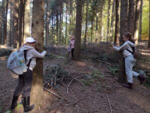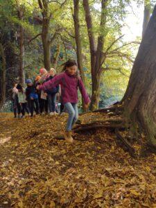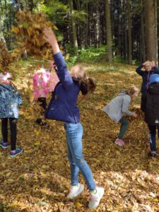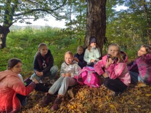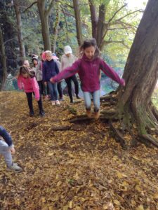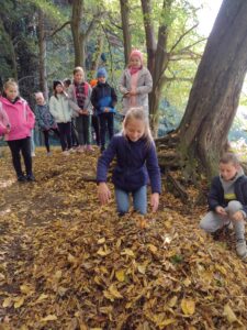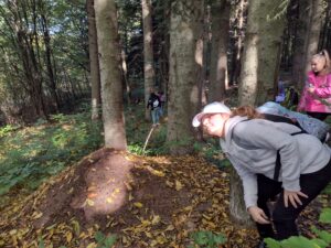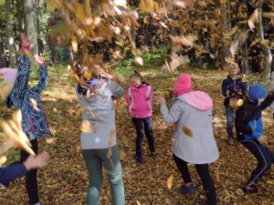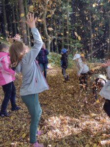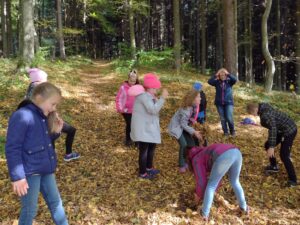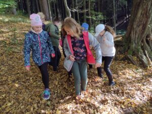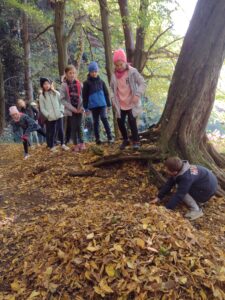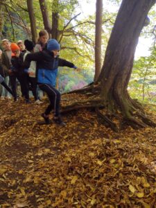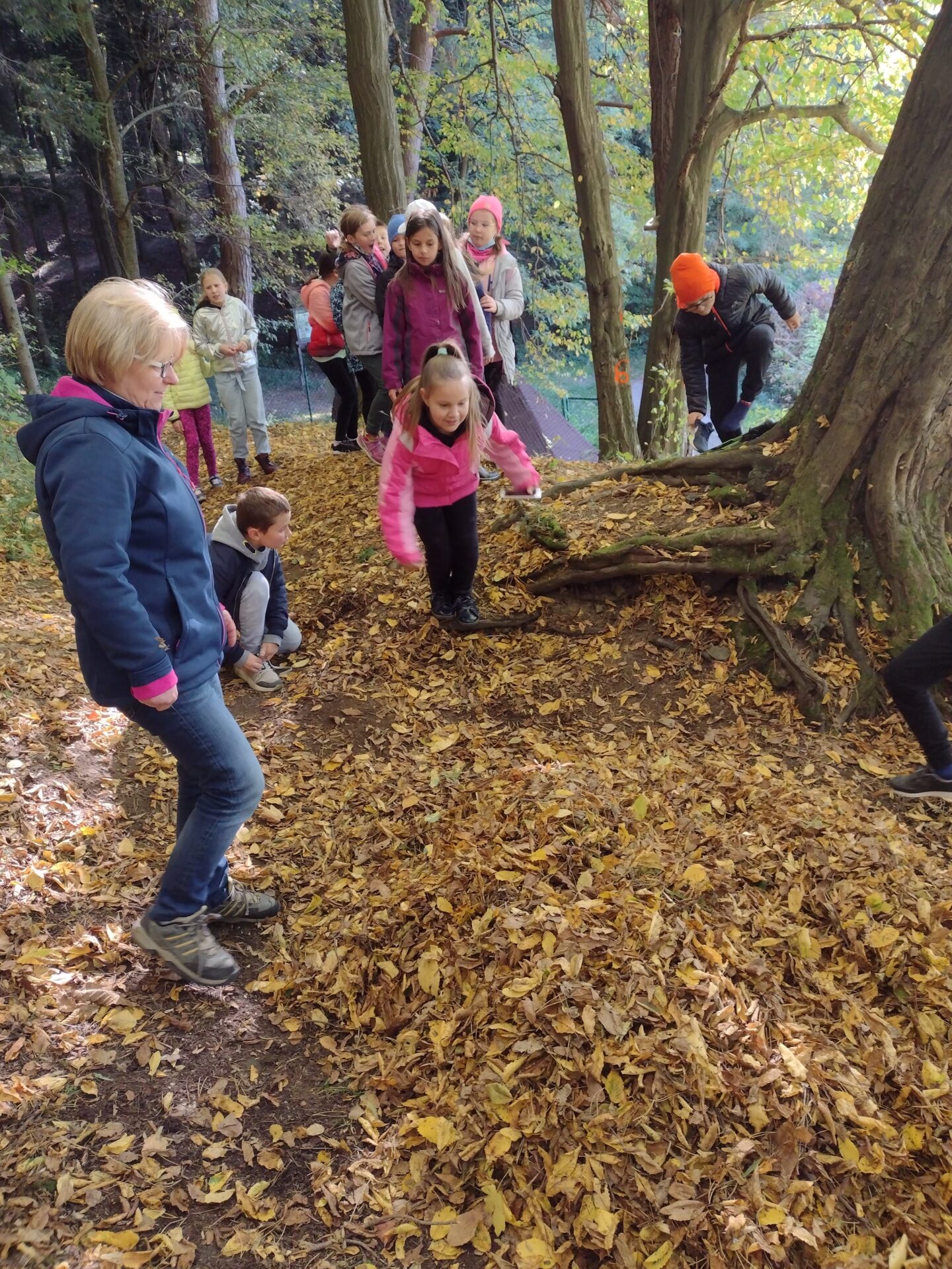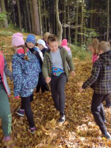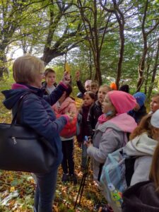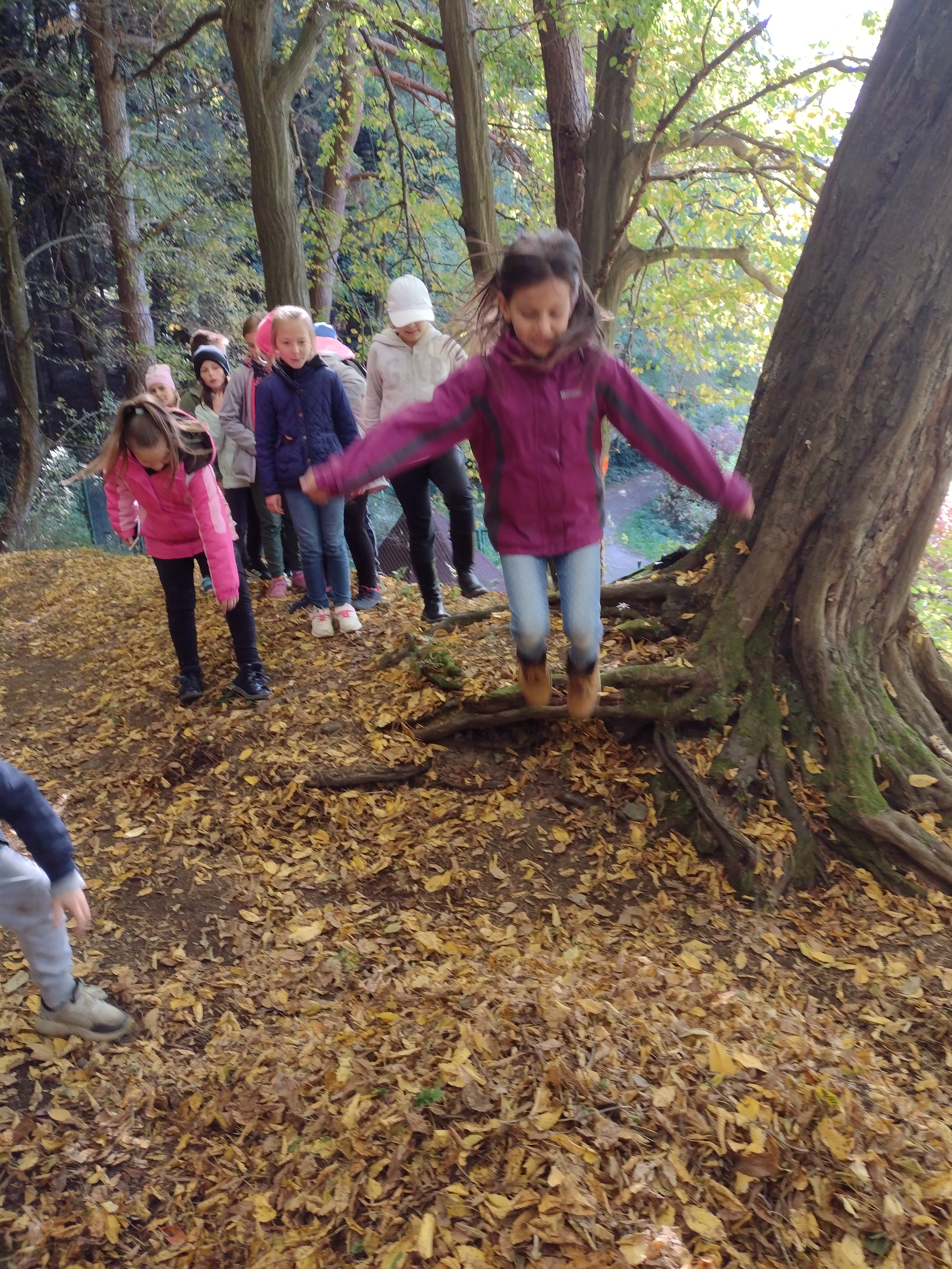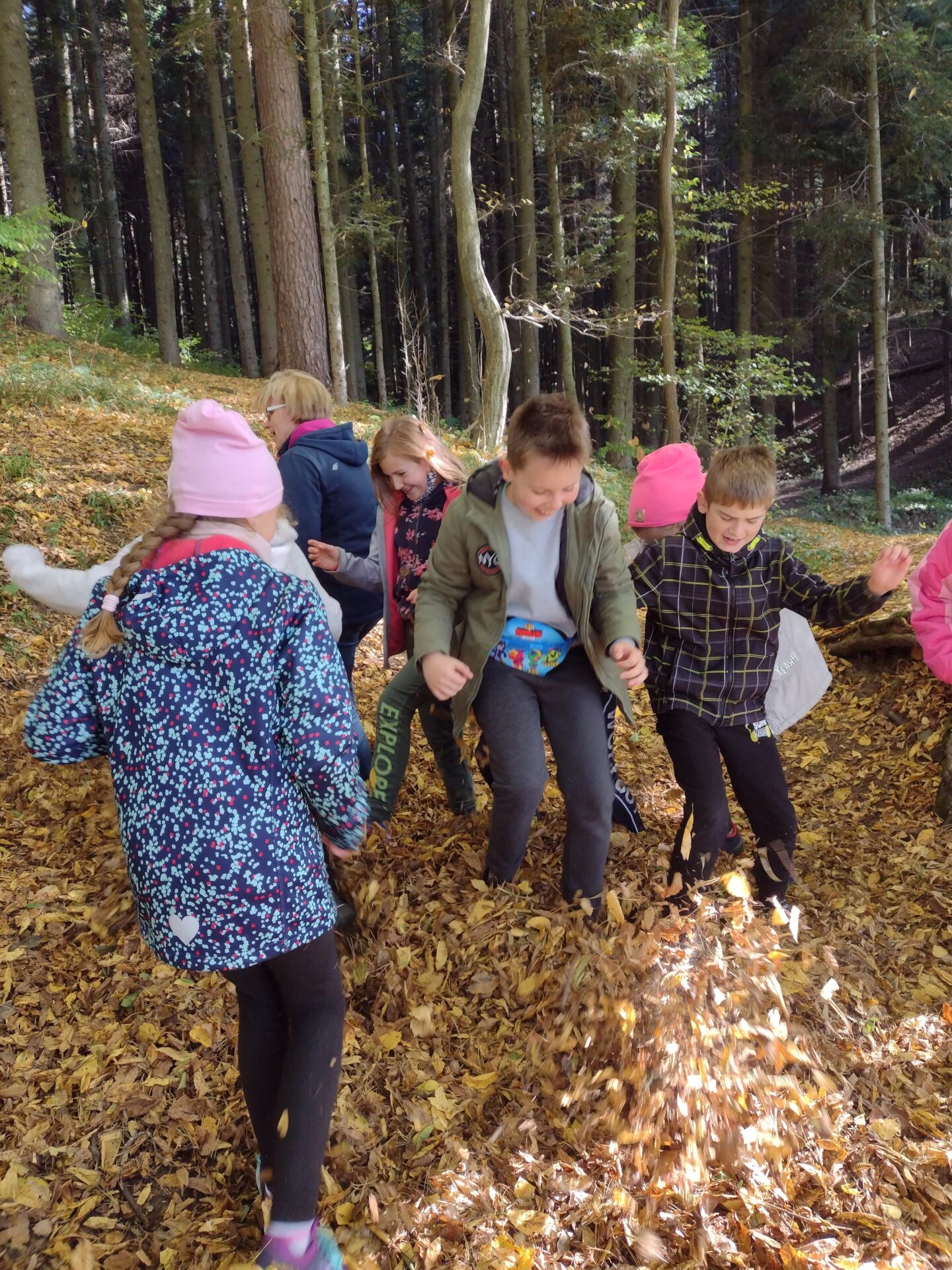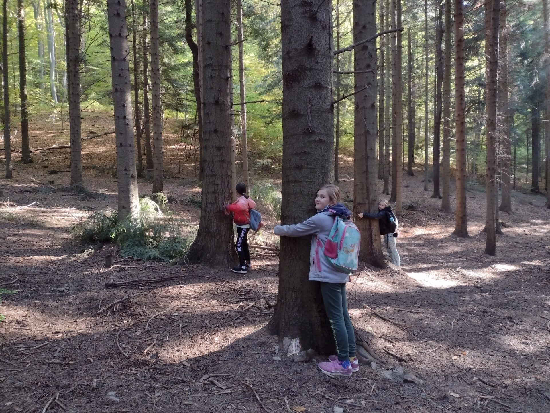 Klasa 3b w dniu 8 października udała się na wycieczkę rekreacyjno-edukacyjną do lasu w Sanoku, będącego częścią Parku Krajobrazowego Gór Słonnych. Celem wycieczki było przypomnienie dzieciom, z jakich warstw jest zbudowany las, rodzaje lasów występujących w środowisku, a także jakie zwierzęta i rośliny możemy spotkać w tym miejscu. Podczas spaceru po lesie uczniowie starali się rozpoznać typowe dla tego miejsca rośliny oraz nazwać różne gatunki drzew, a także ich owoce. Korzystając z lup oraz lornetki mogli obserwować leśne ptaki, owady oraz budowę roślin czy też wygląd mrowiska. Wycieczka przebiegła w miłej atmosferze, to był piękny, jesienny dzień. Nasi wychowankowie cieszyli się ze wspólnie spędzonych chwil, uczestniczyli w grach i zabawach integrujących grupę, zjedli wspólnie drugie śniadanie. Podczas spacerowania zebrali liście oraz inne dary przyrody, które wykorzystano w szkole podczas lekcji edukacji przyrodniczej.