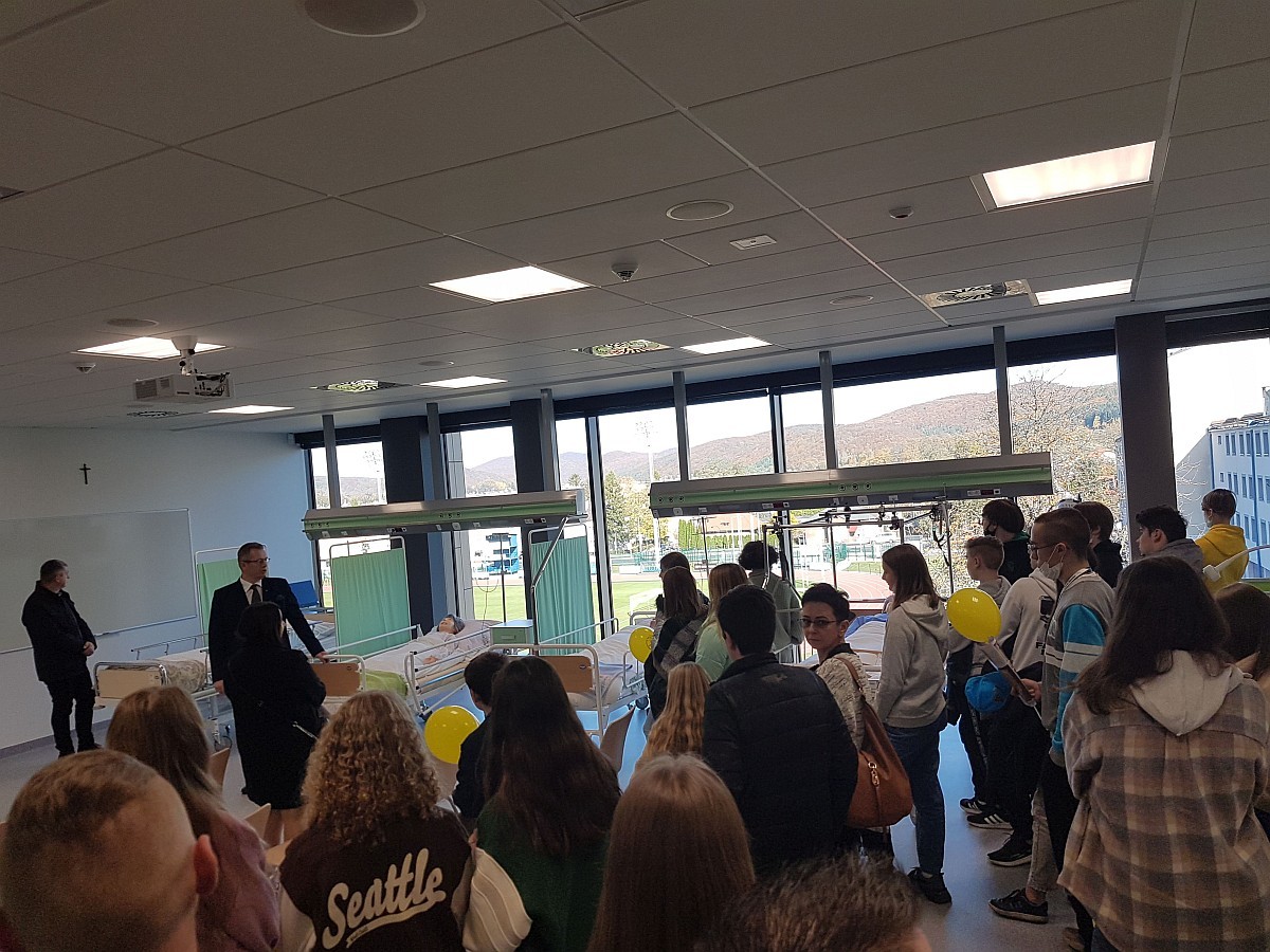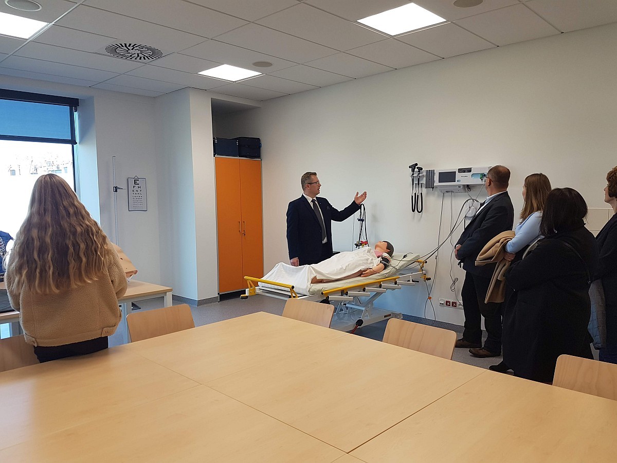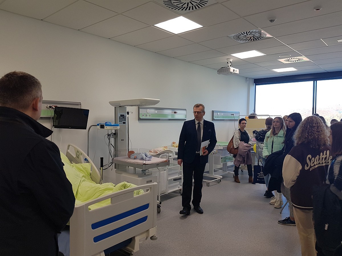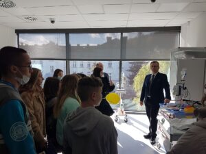 Na zakończenie nasi uczniowie zostali oprowadzeni przez doktora Krzysztofa Jakubowskiego po nowo wybudowanym Centrum Symulacji Medycznej, które od początku października służy studentom kierunków pielęgniarstwo i ratownictwo medyczne.