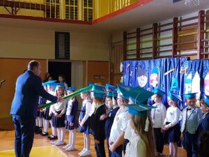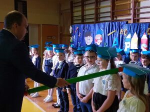 Jak co roku, uczniowie klas pierwszych z wielkim zapałem rozpoczęli naukę w naszej szkole. W dniu 21 października 2021 roku odbyło się pasowanie na ucznia Szkoły Podstawowej nr 9 w Sanoku. Uroczyste ślubowanie złożyli uczniowie klas Ia i I b. Na ceremonię przybyli: dyrektor Damian Wojtowicz , pani wicedyrektor Ewa Wrotniak oraz rodzice uczniów. Uczniowie klas pierwszych ślubowali być godnymi Polakami i wzorowymi uczniami. W ten sposób oficjalnie przyjęci zostali do grona uczniów naszej szkoły. Największym przeżyciem dla dzieci był moment pasowania. Pan Dyrektor poprzez dotknięcie ogromnym, zaczarowanym ołówkiem ramienia każdego dziecka zamieniał go w prawdziwego ucznia. Na koniec dzieci otrzymały pamiątkowe dyplomy i upominki. Nie zabrakło też życzeń i upominków od Samorządu Szkolnego.