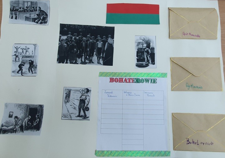 Ponieważ omawianie tekstów literackich jest doskonałą okazją do pracy metodą projektu, tak się stało i tym razem. Uczniowie mogli wybrać rodzaj zadania projektowego: makietę, lapbooka lub przygotowanie tzw. „lektury w pudełku”. Po ustaleniu składu grup, zabrali się do pracy, która trwała kilka godzin lekcyjnych. Była to wspaniała okazja do wykazania się pomysłowością i kreatywnością, uczenia się współpracy, odpowiedzialności, umiejętności kompromisu, a przede wszystkim integracji. Co ważne, uczestnicy grup projektowych dokonywali samooceny aktywności swojej drużyny i trzeba przyznać, że zrobili to naprawdę obiektywnie.