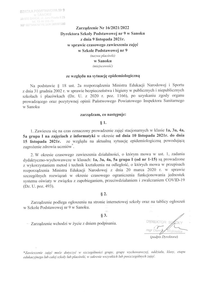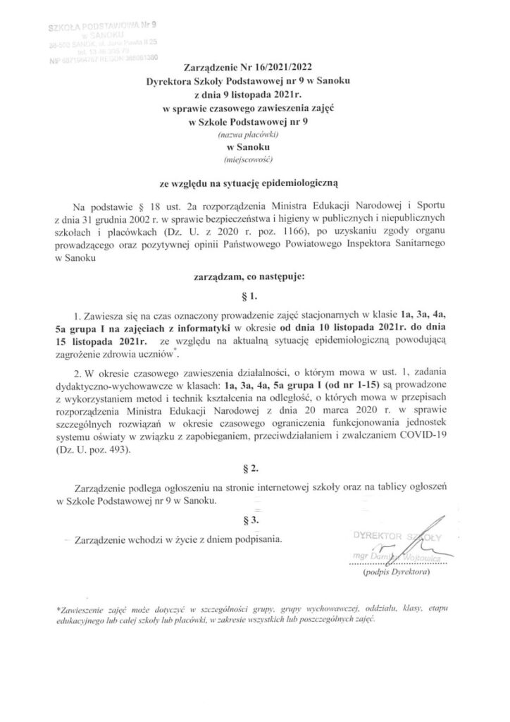 Aktualności Zarządzenie dotyczące kwarantanny w wybranych klasach Przez SP9 - 9 listopada 2021 0 661 Podziel się na Facebooku Tweet (Ćwierkaj) na Twitterze Szanowni Rodzice! W związku z objęciem wybranych klas kwarantanną publikujemy zarządzenie i prosimy o zapoznanie się z jego treścią.