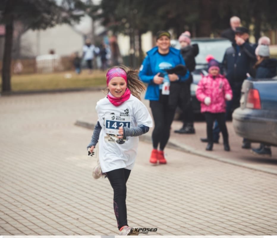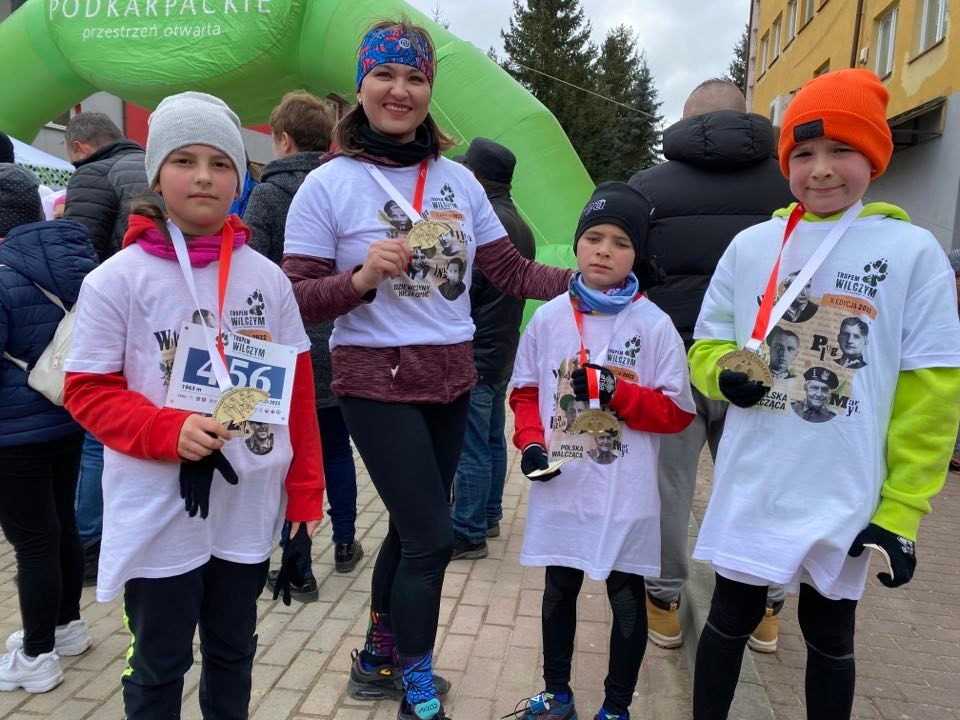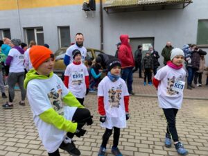 Wśród nich znaleźli się uczniowie naszej szkoły: Łukasz Sieradzki (2b), Milena Masłowiec (3a), Blanka Łuczycka (4a), Oliwier Curzydło (4a), którzy pomimo bardzo młodego wieku oraz wymagającej trasy zaczynającej się solidnym podbiegiem, dzielnie przebiegli dystans 1963 m, meldując się na mecie z wielkim uśmiechem.