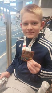 Debiut zanotował nasz uczeń, Gabriel Bury (3c). Gabryś swoją przygodę z lekkoatletyką rozpoczął niedawno, gdyż przed imprezą wziął udział w zaledwie trzech treningach, podczas których udało mu się na tyle zachwycić swoimi umiejętnościami trenera „Komunalnych Sanok”, że ten zdecydował się na zgłoszenie Gabrysia do startu.