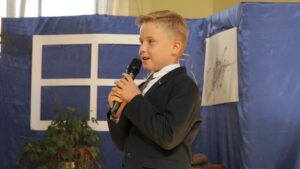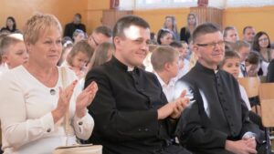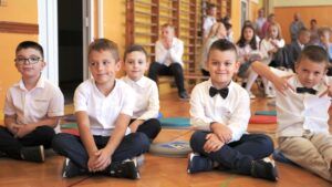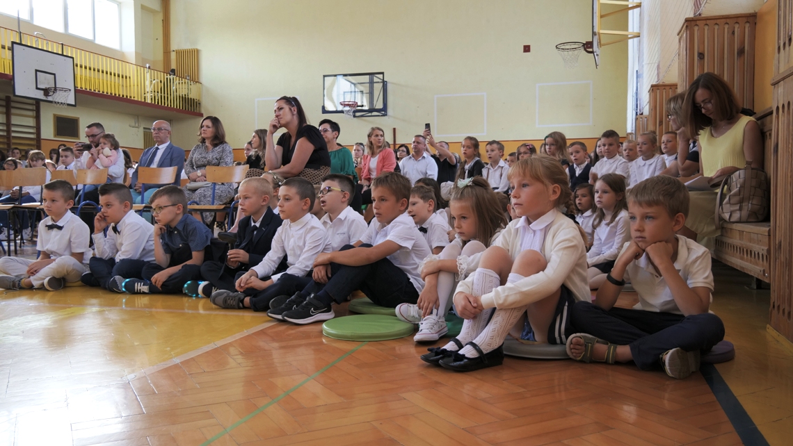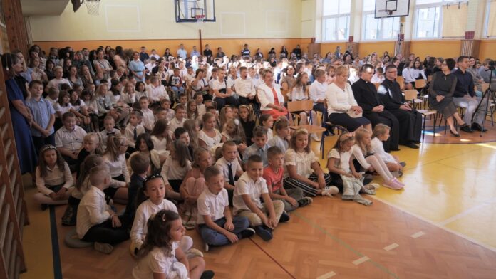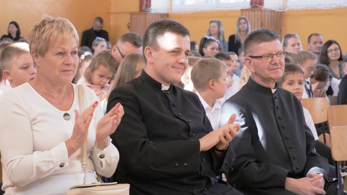 Akademię rozpoczęliśmy przywitaniem Dyrekcji, ks. Proboszcza oraz wszystkich zebranych. Najważniejsi jednak byli uczniowie Szkoły Podstawowej nr 9, przede wszystkim uczniowie klas pierwszych, bo to oni rozpoczęli kolejny etap w swoim życiu.