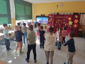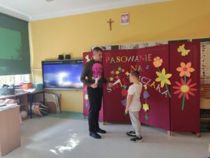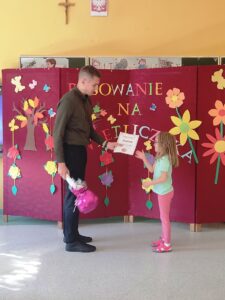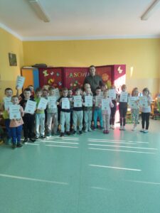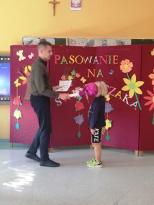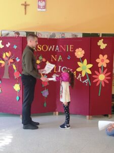 Wszyscy uczniowie poradzili sobie świetnie, dlatego po wspólnym wypowiedzeniu słów ślubowania, obyło się uroczyste pasowanie, a każdy nowo przyjęty świetliczak otrzymał pamiątkowy dyplom.
