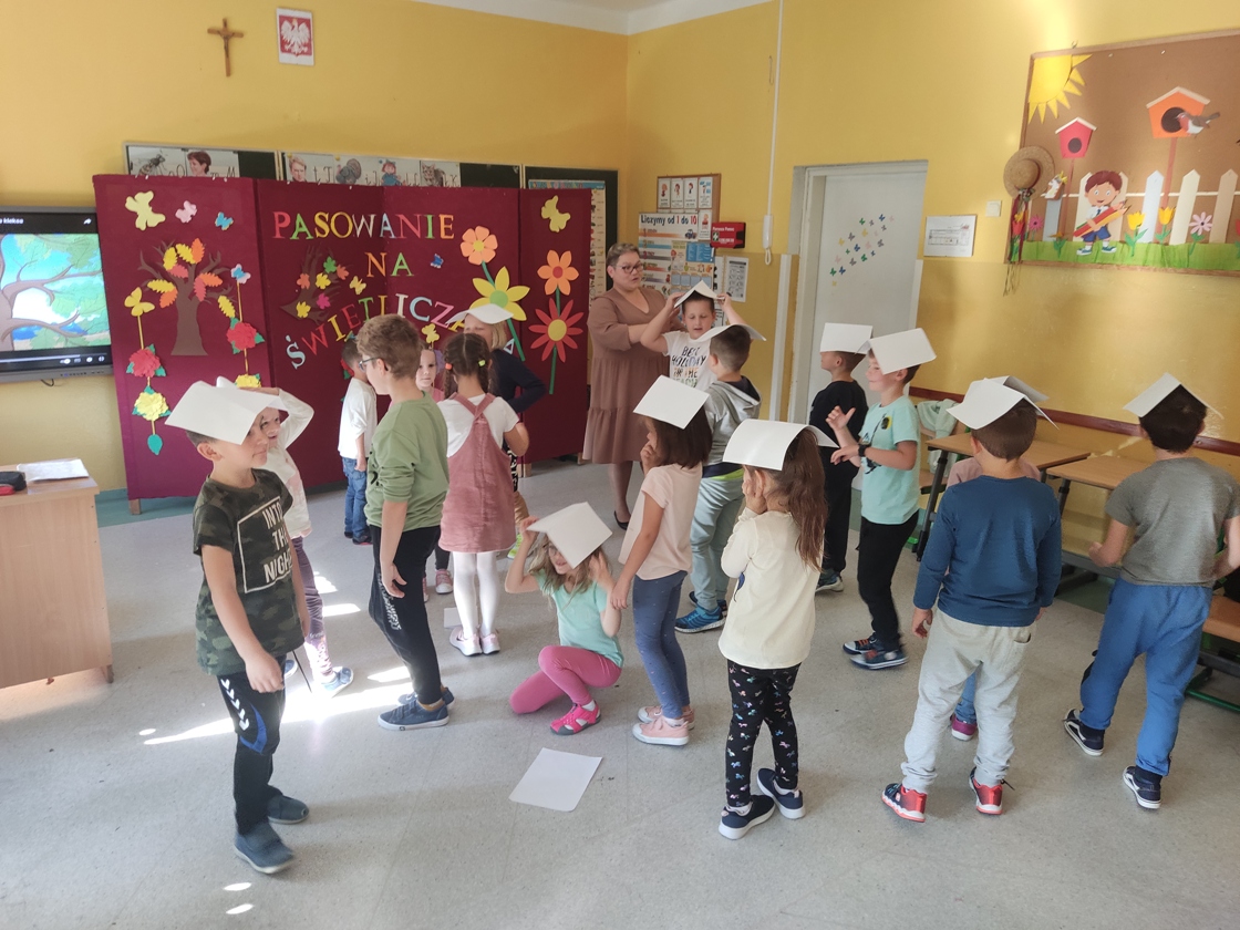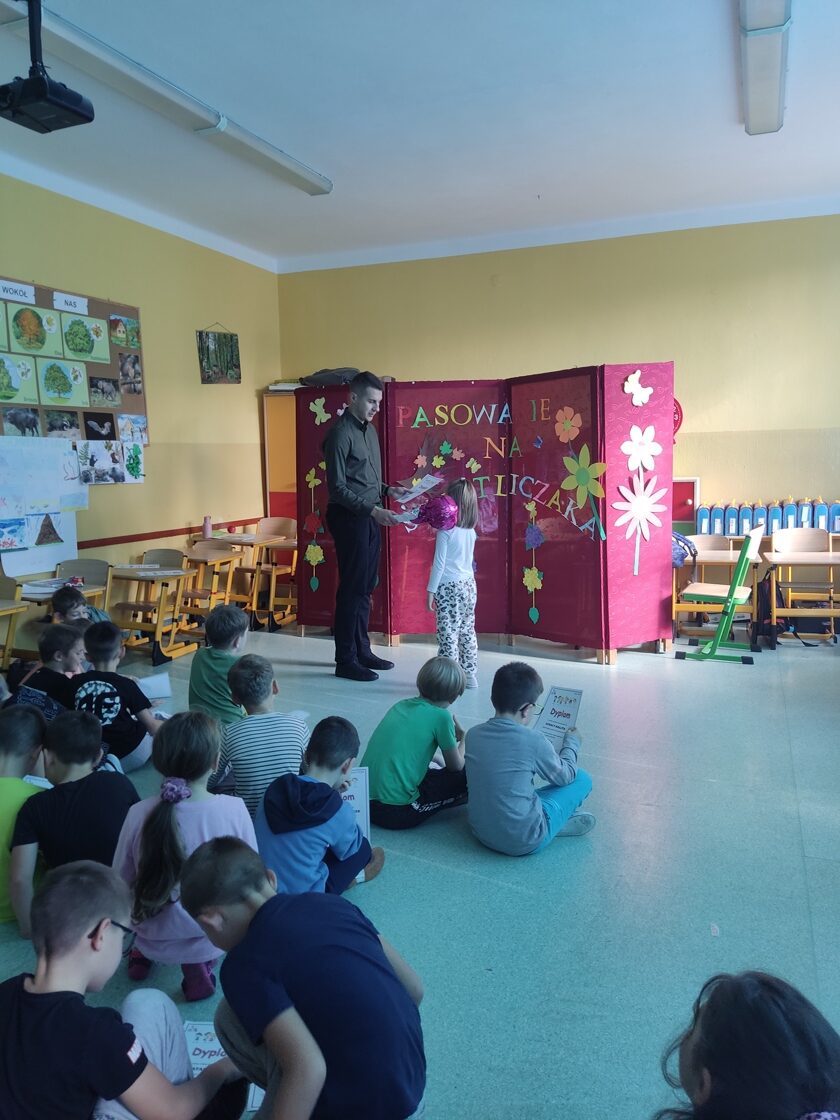 Wszyscy uczniowie poradzili sobie świetnie, dlatego po wspólnym wypowiedzeniu słów ślubowania, obyło się uroczyste pasowanie, a każdy nowo przyjęty świetliczak otrzymał pamiątkowy dyplom.