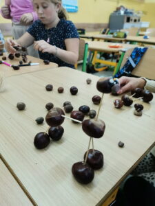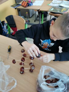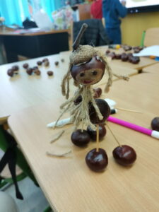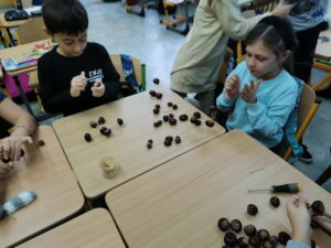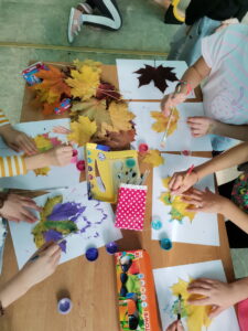 W naszej świetlicy znów gwarno i wesoło, a złota jesień coraz bardziej ukazuje swoje oblicze. Podczas zajęć inspirowaliśmy się pięknymi darami jesieni. Powstawały korale i bransoletki z uzbieranej jarzębiny, ludziki, zwierzaki i różnego rodzaju konstrukcje z przyniesionych z parku kasztanów. Nasion klonowych użyliśmy do zrobienia pięknych ważek. Liście jesienne również zostały wykorzystane do wielobarwnych odbitek. Ponadto wykorzystując rozmaite techniki, uczniowie wykonali jesienne liście, jeże, parasolki i wiele innych przedmiotów. Wszystkie prace można podziwiać na naszych świetlicowych gazetkach.