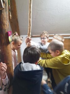 Klasa 3c wraz z wychowawczynią panią Ewą Błażejewską oraz panią Magdaleną Dobosz odwiedziła sąsiednią szkołę, aby zwiedzić IZBĘ REGIONALNĄ. Składa się na nią również zagroda gospodarcza przed wejściem do Izby oraz zupełnie nowe pomieszczenie – Izba Szkolna.
