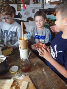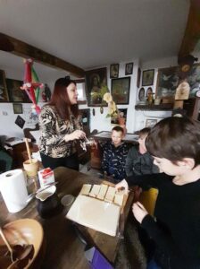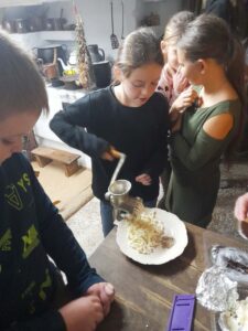 Gospodarze ugościli nas pysznym miodem, domowym twarogiem, a przede wszystkim cudowną atmosferą, jaka panowała podczas warsztatów. Dziękujemy paniom, które przeprowadziły ciekawe zajęcia i poświęciły nam czas. Dziękujemy panu dyrektorowi Markowi Wojtowiczowi za miłe powitanie i zaproszenie na warsztaty bożonarodzeniowe.