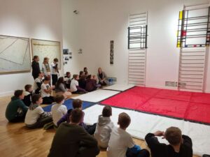Lekcja muzealna była okazją do odwiedzenia MNK, które jest najstarszą tego typu instytucją w Polsce oraz do bliskiego, bezpośredniego kontaktu z dziełami sztuki, ćwiczenia uważności, kreatywnego, twórczego myślenia.