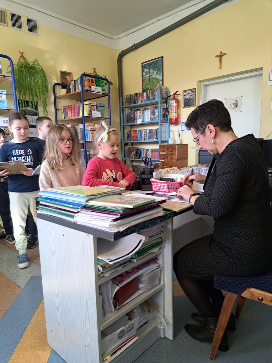 Głównym celem spotkania było zachęcenie najmłodszych uczniów do korzystania z biblioteki szkolnej, wypożyczania książek oraz nieustannego rozwijania umiejętności czytania.