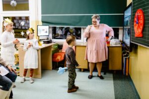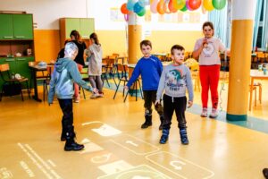 Klasa 2b przygotowała taniec gwiazdek. Z kolei roztańczona klasa 1a zaprezentowała układ do piosenki „Blue, da, ba, di”.