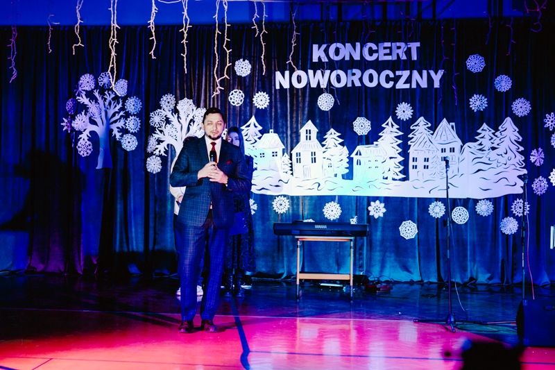 Następnie krótką mowę wygłosił Burmistrz Miasta Sanoka pan Tomasz Matuszewski. Pan Burmistrz zwrócił uwagę na wspaniały klimat panujący w sali gimnastycznej SP9, która zmieniła się w scenę dla artystów oraz zachęcał do skorzystania z oferty placówki. Życzył także zebranym wszelkiej pomyślności w Nowym Roku.