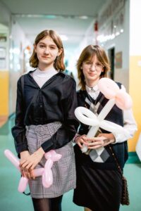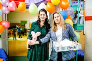 Tak było i tym razem. Nasze wspaniałe absolwentki – Jagoda Kopczak i Zosia Filipowicz pięknie śpiewająco składały wszystkim życzenia utworem „Sobie