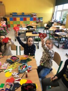Świetliczaki poznały kilka faktów z życia św. Walentego oraz historię i zwyczaje Święta Zakochanych. Uczniowie z wielką ochotą i zaangażowaniem wykonywali piękne serduszka, pudełeczka i karteczki dla najbliższych ich sercu. W świetlicy szkolnej dzień Św. Walentego zamienił się w tydzień Św. Walentego, który upłynął w atmosferze pełnej miłości, przyjaźni i ciepła.