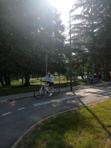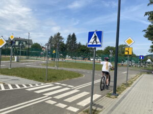 W ostatnich dniach uczniowie naszej szkoły ponownie mieli okazję zdawać egzamin na kartę rowerową. Czwartoklasiści na lekcjach techniki zdobywali wiedzę i umiejętności z zakresu ruchu drogowego, aby w przyszłości móc bezpiecznie poruszać się rowerami po drogach publicznych. Pierwszym etapem, z którym mierzyli się uczniowie, był egzamin teoretyczny. Rozwiązywali oni test zawierający zagadnienia dotyczące przepisów ruchu drogowego. Drugi etap był pełen wrażeń i emocji. Ta część egzaminu odbyła się po raz pierwszy na nowo otwartym miasteczku ruchu drogowego w Sanoku, przy ul. Białogórskiej nad Sanem, na którym uczniowie musieli wykazać się dużą umiejętnością jazdy na rowerze po wyznaczonym torze. Kartę rowerową uzyskało 34 osoby.
