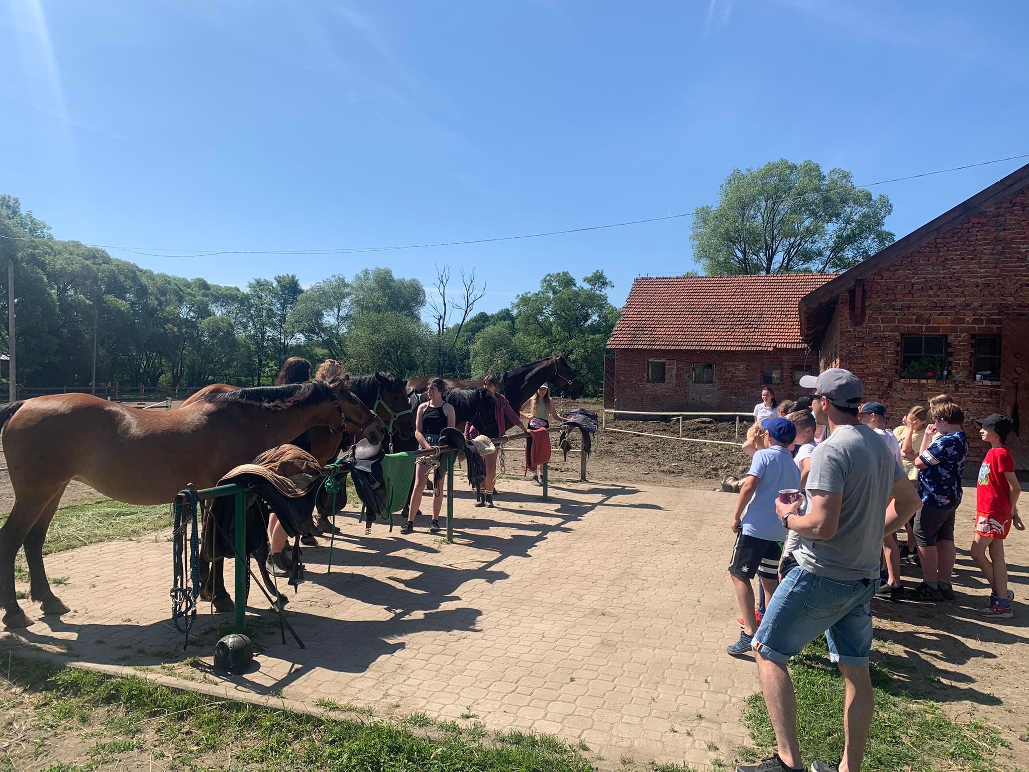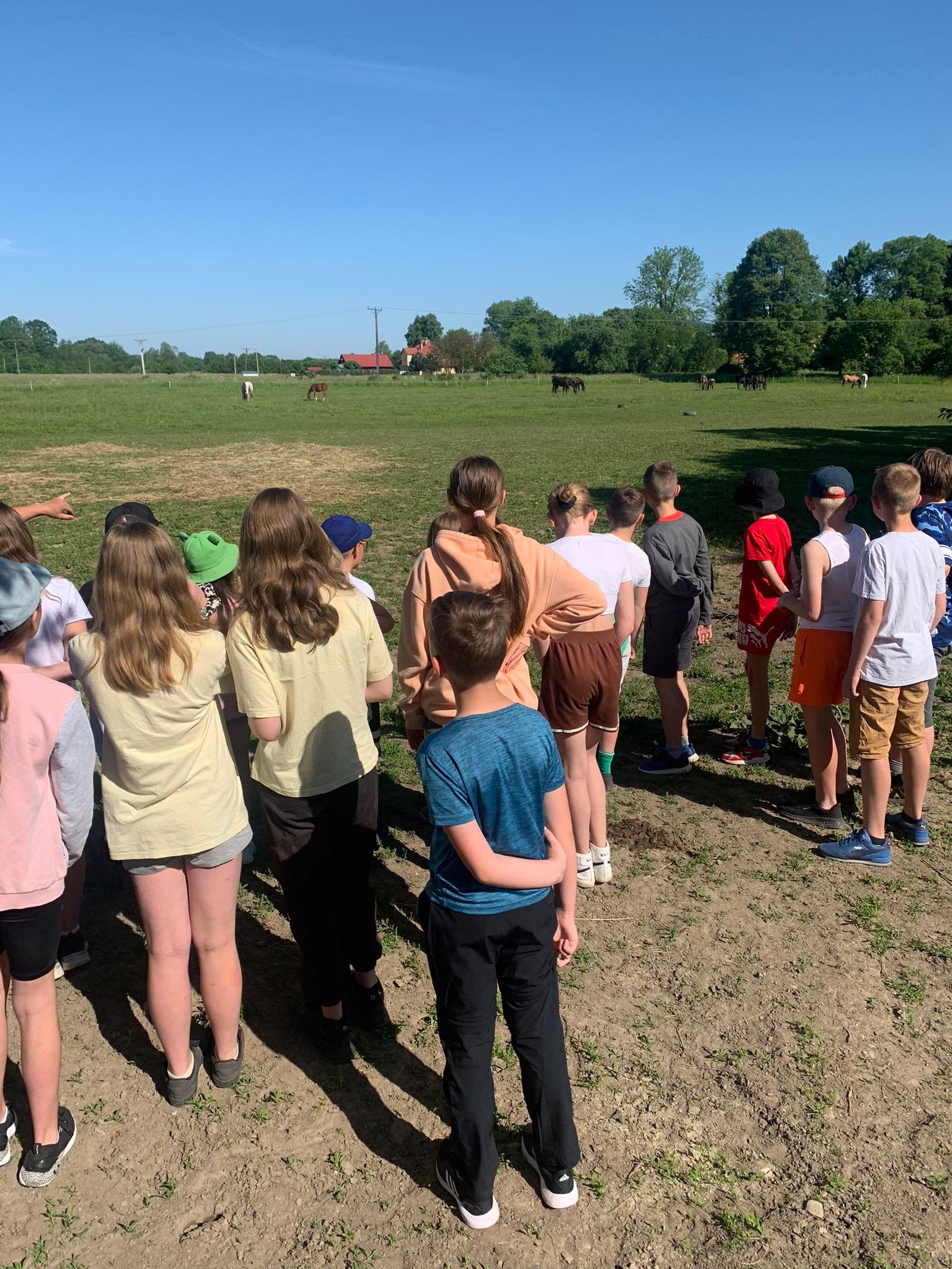 1 czerwca, w jeden z najważniejszych dni w roku, Dzień Dziecka, nasi uczniowie odwiedzili „Folwark u Goców” w Srogowie Dolnym, gdzie mieści się stadnina koni. Wycieczkę rozpoczęliśmy od zwiedzenia stajni, gdzie mieliśmy okazję zobaczyć na własne oczy źrebaka, który niespełna cztery godziny wcześniej przyszedł na świat. Każdy z uczniów mógł dosiąść konia oraz spróbować jazdy, również bez trzymanki, gdyż Pani instruktor zadbała o to, by nieco urozmaicić dzieciakom ich niejednokrotnie pierwszy kontakt z tymi pięknymi zwierzętami.