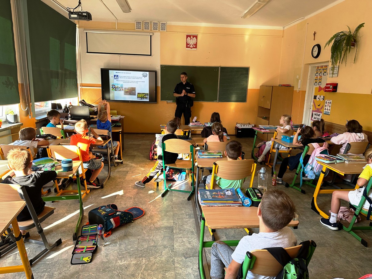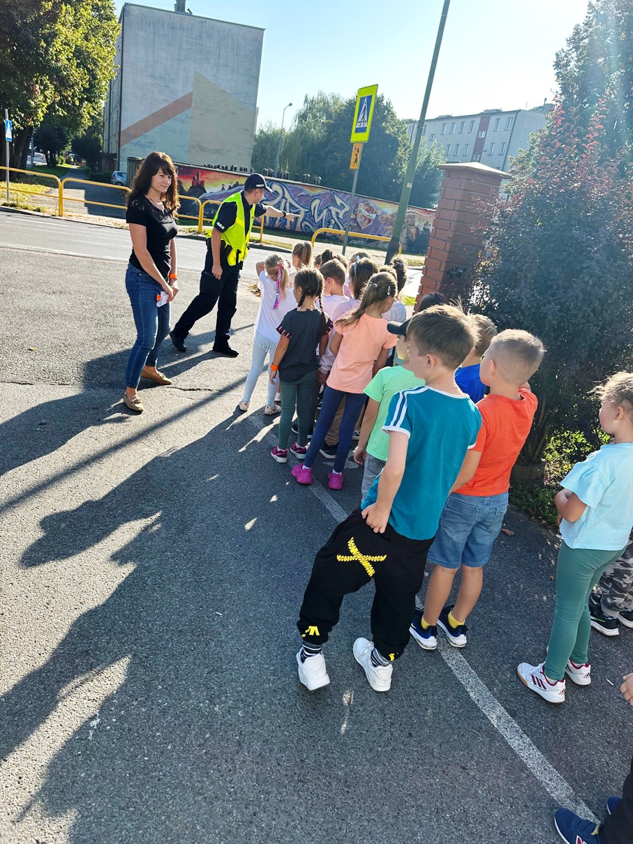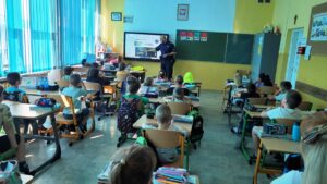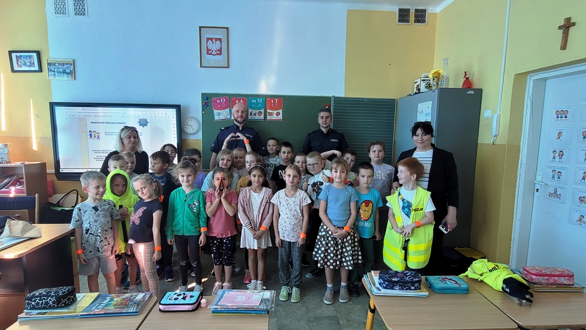 Projekt ten kierowany jest do uczniów rozpoczynających naukę w szkole podstawowej. W trakcie spotkania funkcjonariusze w formie prezentacji przekazali najważniejsze zasady bezpieczeństwa dziecka w szkole, w domu, podczas zabawy, a także poruszania się po drodze i w cyberprzestrzeni. Pierwszoklasiści, pod czujnym okiem funkcjonariuszy oraz nauczycieli, przećwiczyli również bezpieczne przechodzenie przez jezdnię na przejściu dla pieszych, które znajduje się w okolicy naszej szkoły.