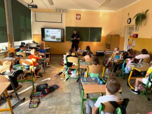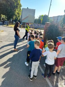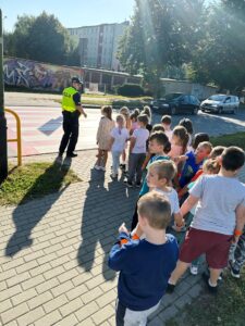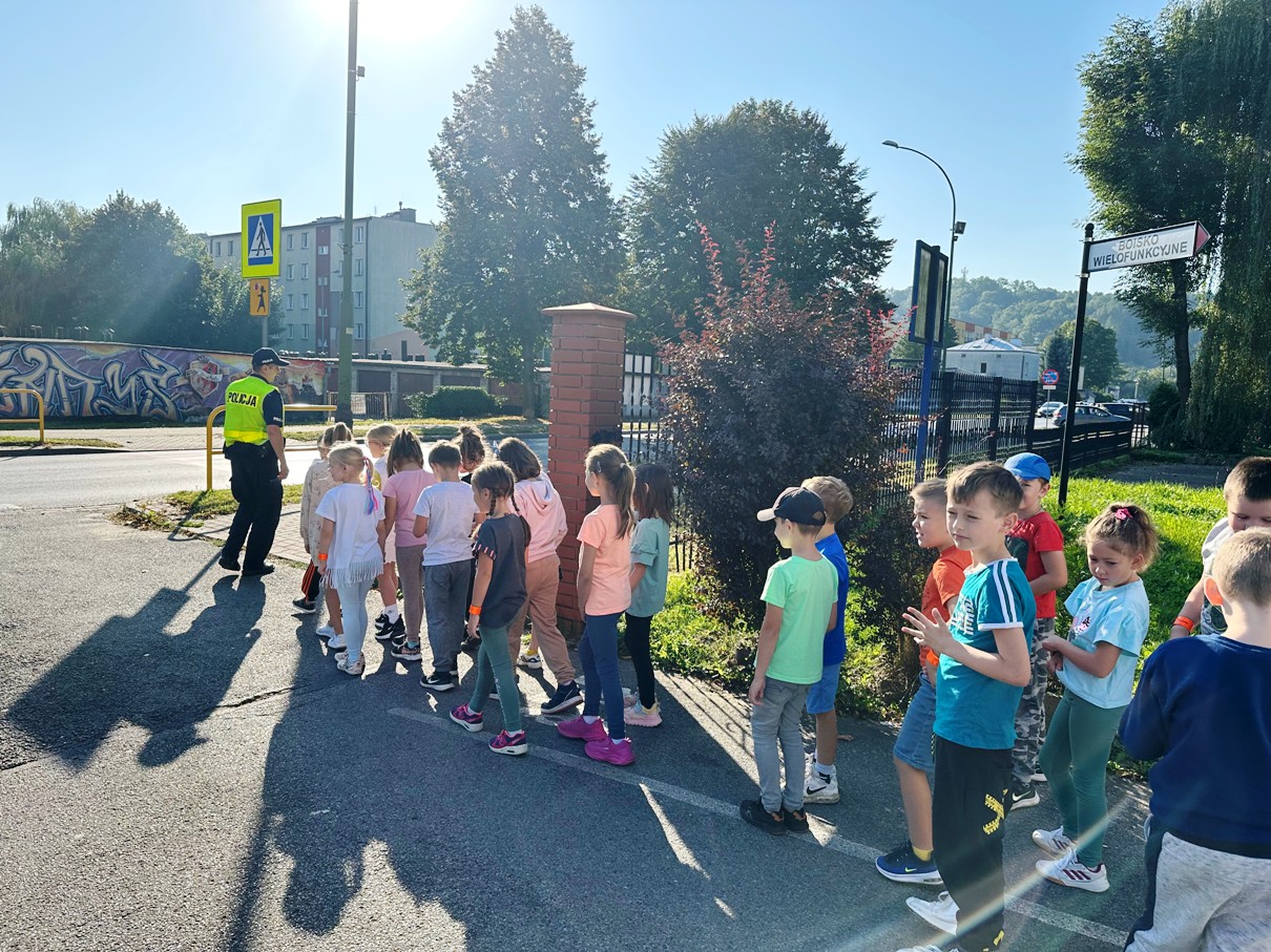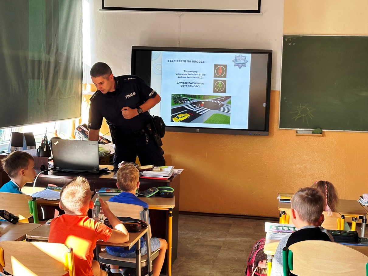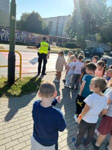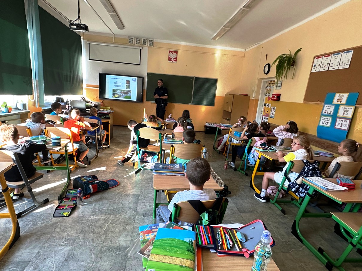 Projekt ten kierowany jest do uczniów rozpoczynających naukę w szkole podstawowej. W trakcie spotkania funkcjonariusze w formie prezentacji przekazali najważniejsze zasady bezpieczeństwa dziecka w szkole, w domu, podczas zabawy, a także poruszania się po drodze i w cyberprzestrzeni. Pierwszoklasiści, pod czujnym okiem funkcjonariuszy oraz nauczycieli, przećwiczyli również bezpieczne przechodzenie przez jezdnię na przejściu dla pieszych, które znajduje się w okolicy naszej szkoły.