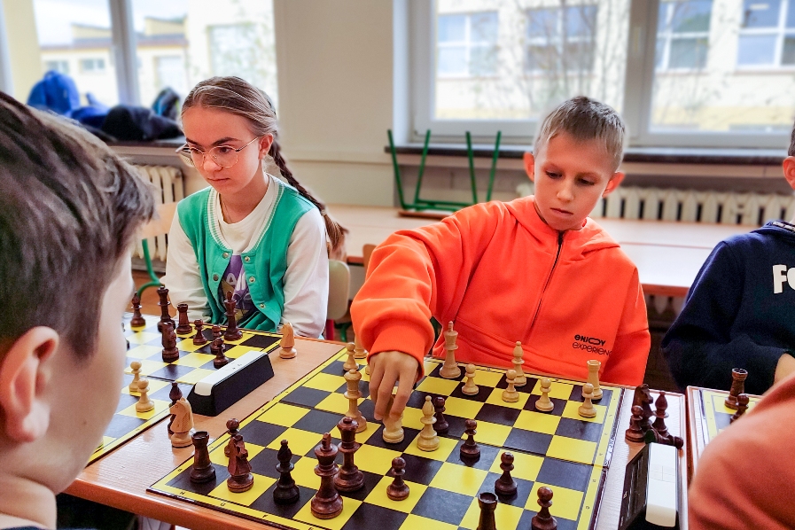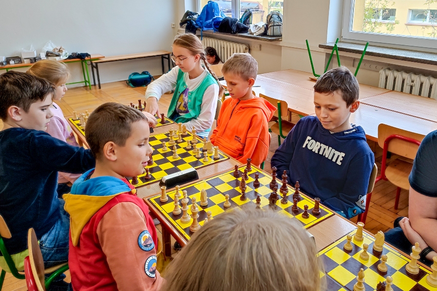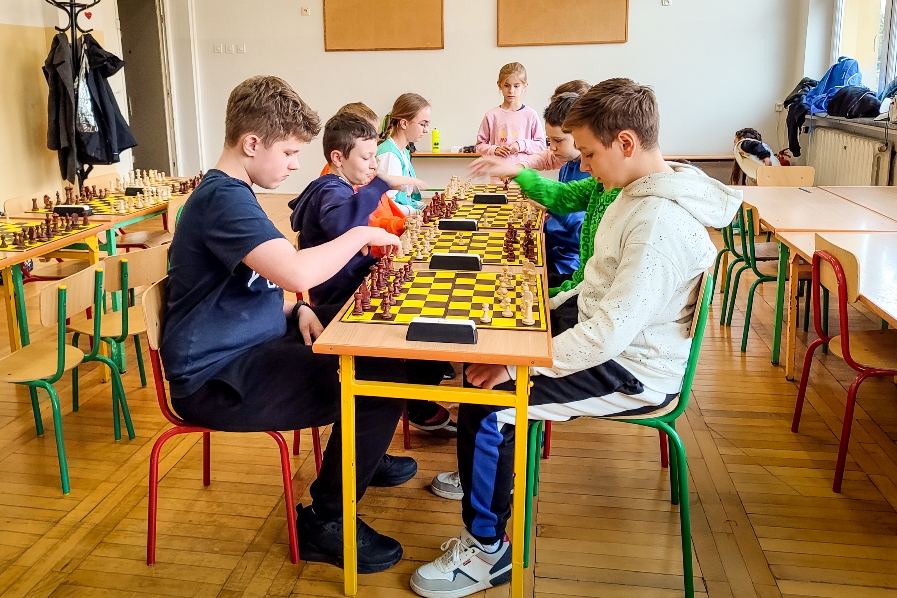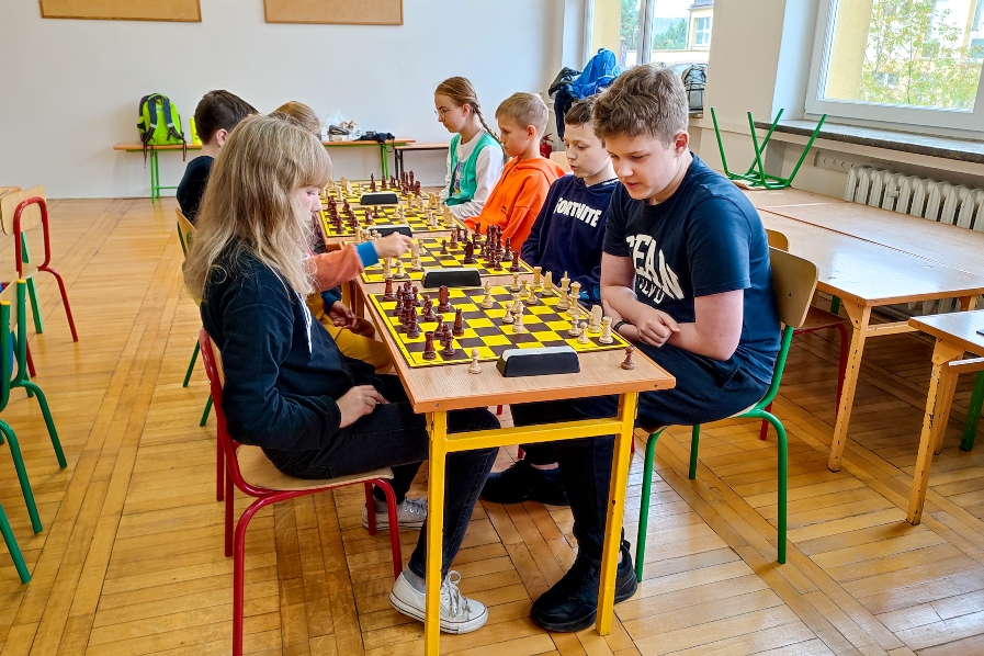 W dniu 16 października odbył się miejski etap zawodów w Szachowych Igrzyskach Młodzieży Szkolnej. Nasi szachiści w składzie: Maksymilian Czopor 4b, Marcel Skolarczyk 4a, Anna Warchoł 6a oraz Szymon Nawrocki 6a – zmierzyli się z drużynami z sanockich szkół, walcząc o awans do zawodów na szczeblu powiatowym. Reprezentacja naszej szkoły nie dała szans zawodnikom z SP3 i SP1 – pokonując każdą z wymienionych drużyn w stosunku 4:0. To znaczy, że każdy z naszych reprezentantów wygrał wszystkie swoje mecze. Kolejny etap zawodów odbędzie się końcem października.