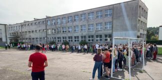 Ewakuacja szkoły. Bezpieczeństwo dzieci na pierwszym miejscu.